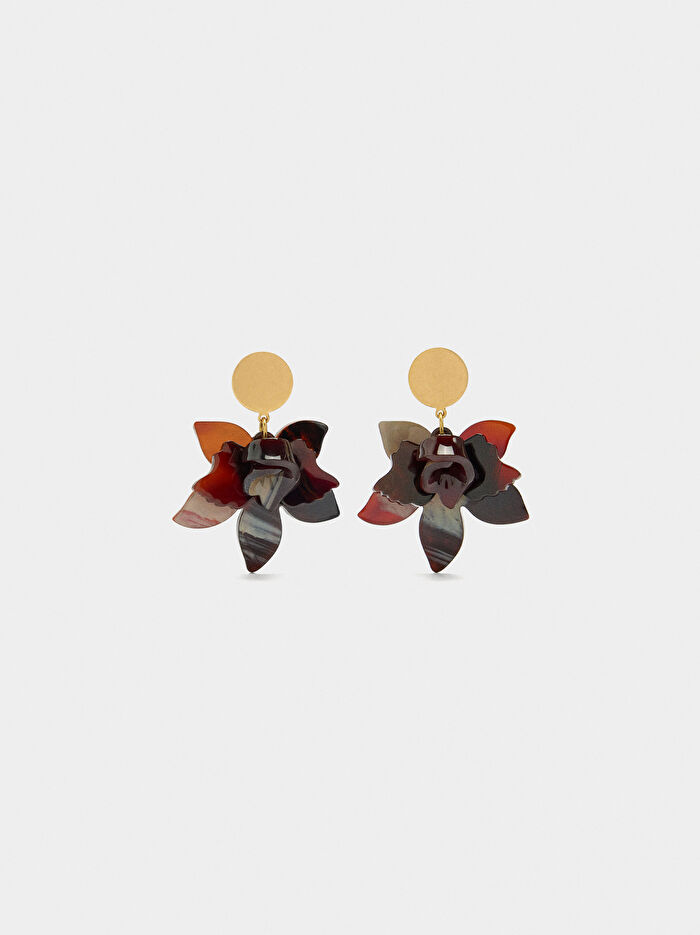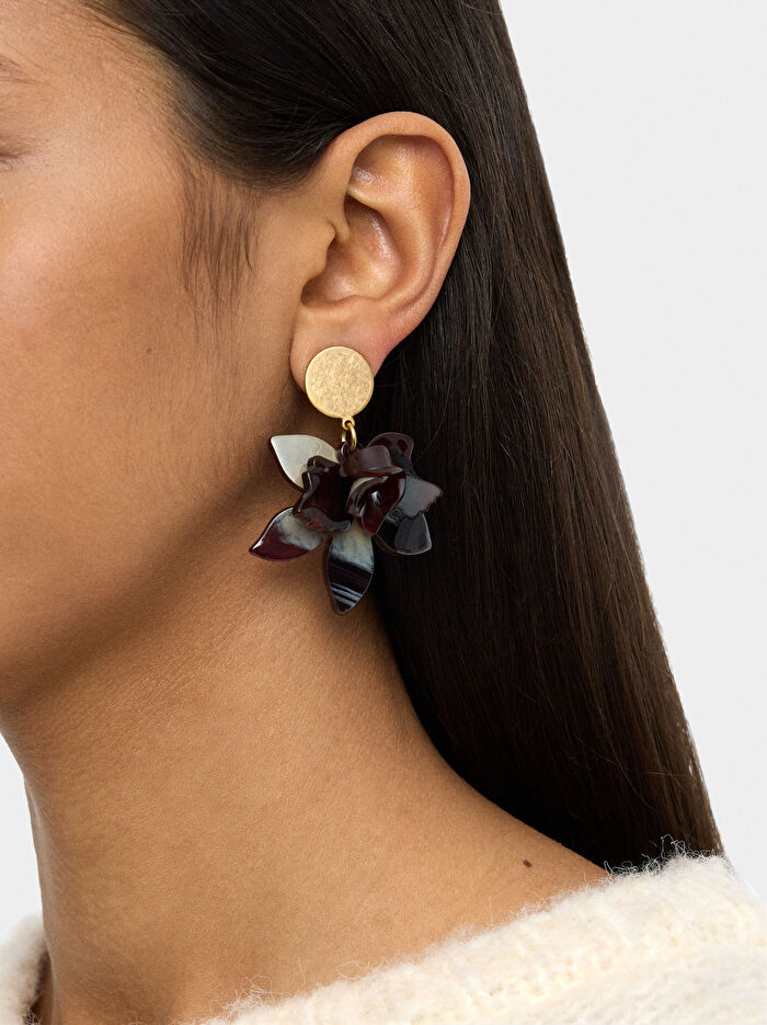 Mermer Desenli Maxi Çiçek Küpe