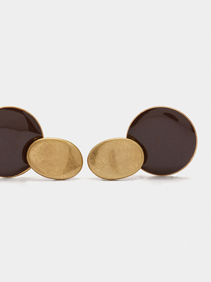 Mine Detaylı Yuvarlak İki Renkli Küpe