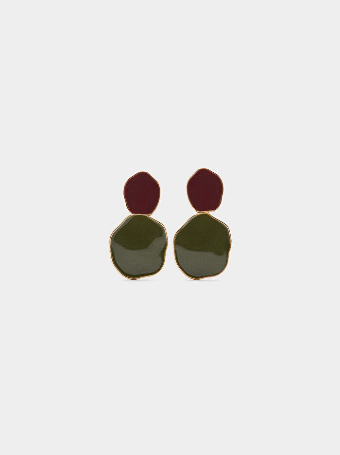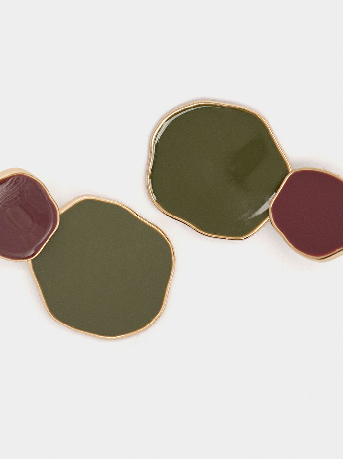 Emayeli, kontrast renklerde düzensiz daire şeklinde orta boy küpe.