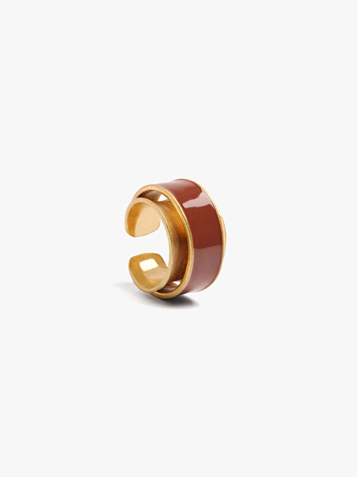 Emaye detaylı geniş yüzük. Keskin kenarlar. Fırçalanmış görünüm.