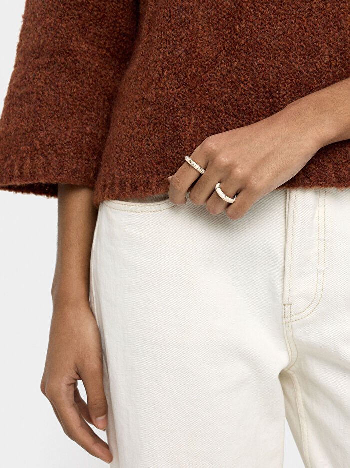 Mineli ve oval çizgi detaylı iki yüzük seti. Altın kaplama.