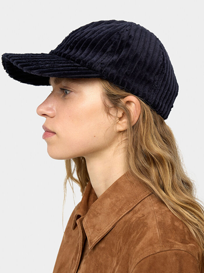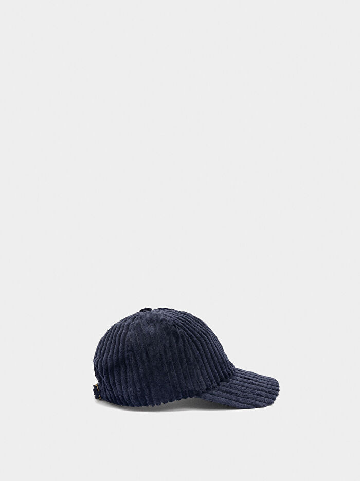 %100 pamuktan üretilmiş nervürlü kadife şapka. Arkada ayarlanabilir kayış.
