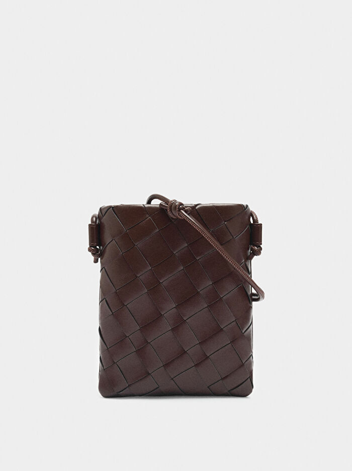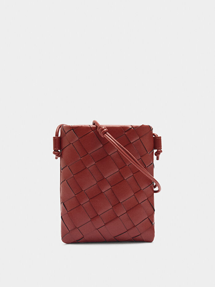 Örgülü orta boy cep telefonu çantası. İç astar. Manyetik kapaklı kapatma. Sabit ve ayarlanabilir askı.