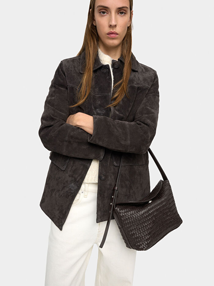 Özenle örülmüş askıları olan büyük deri omuz çantası. Sağlam ancak hafif yapısı ile dikkat çeker. İç astarlı. Manyetik kapaklı. Ayarlanabilir sabit askı. Zarif ve her tarza uygun.