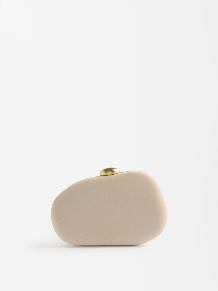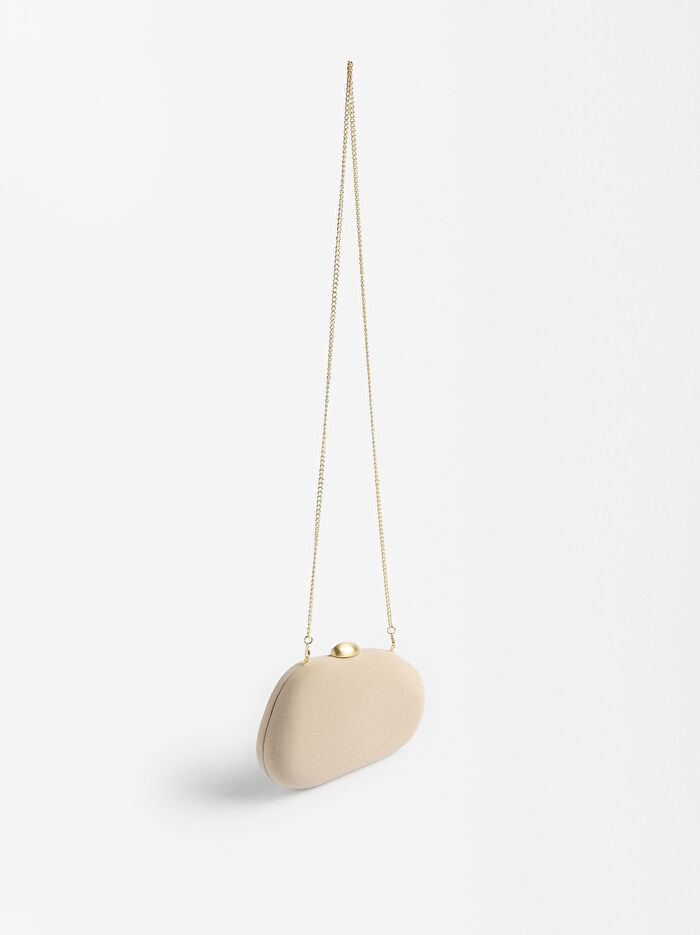 Oval, astarlı party el çantası. Çıtçıtlı kapama. Çıkarılabilir zincir askı.