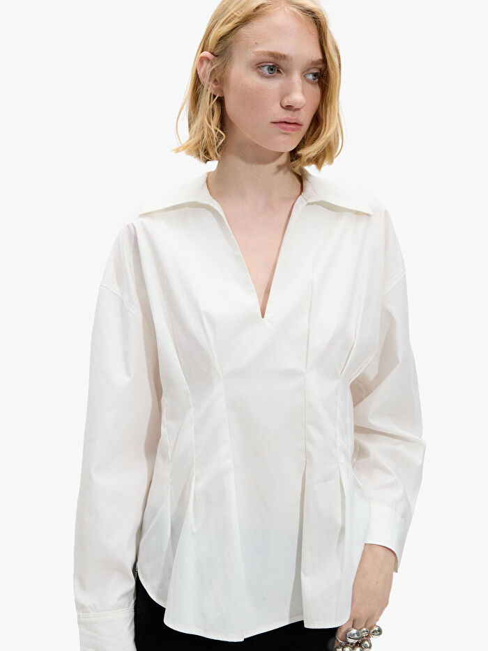 Pamuk Karışımlı Pensli Gömlek