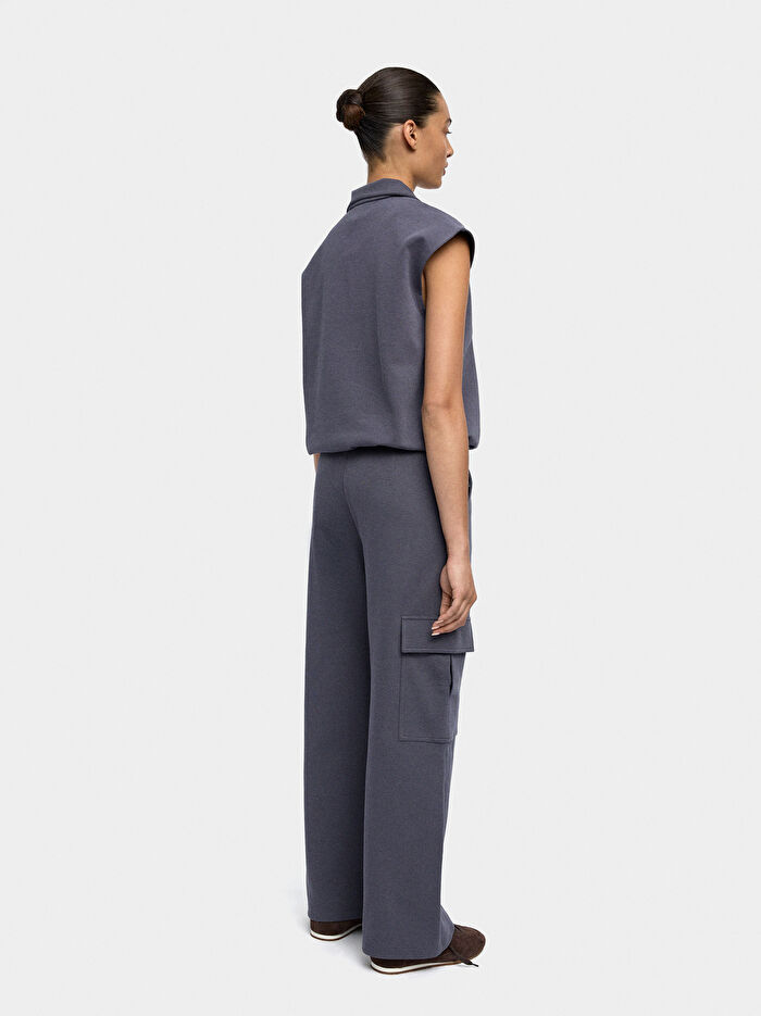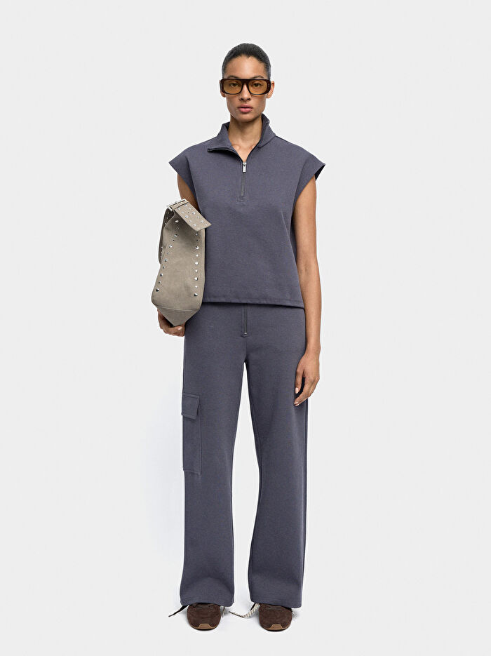 Pamuklu kargo pantolon. Yan cepler. Fermuarlı. Bir tarafı cepli. Model 1,78 m boyunda ve S beden giyiyor.