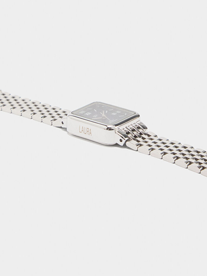 Paslanmaz Çelik Kordonlu Kare Saat
