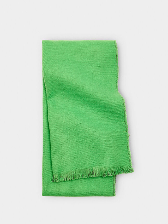 Püsküllü çift taraflı atkı. Şık ve renkli bir dokunuşla sıcak kalmak için mükemmel bir aksesuar.