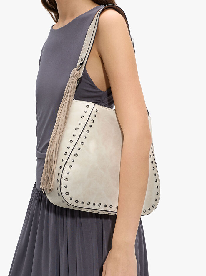 Püsküllü ve Zımba Detaylı Omuz Çantası L