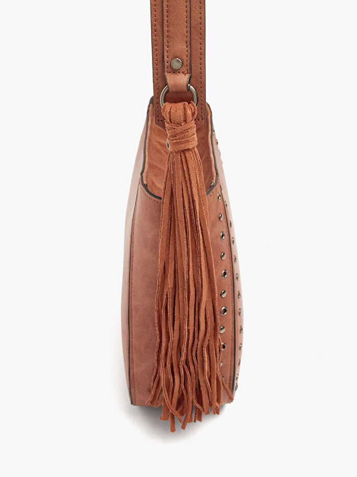 Püsküllü ve Zımba Detaylı Omuz Çantası M