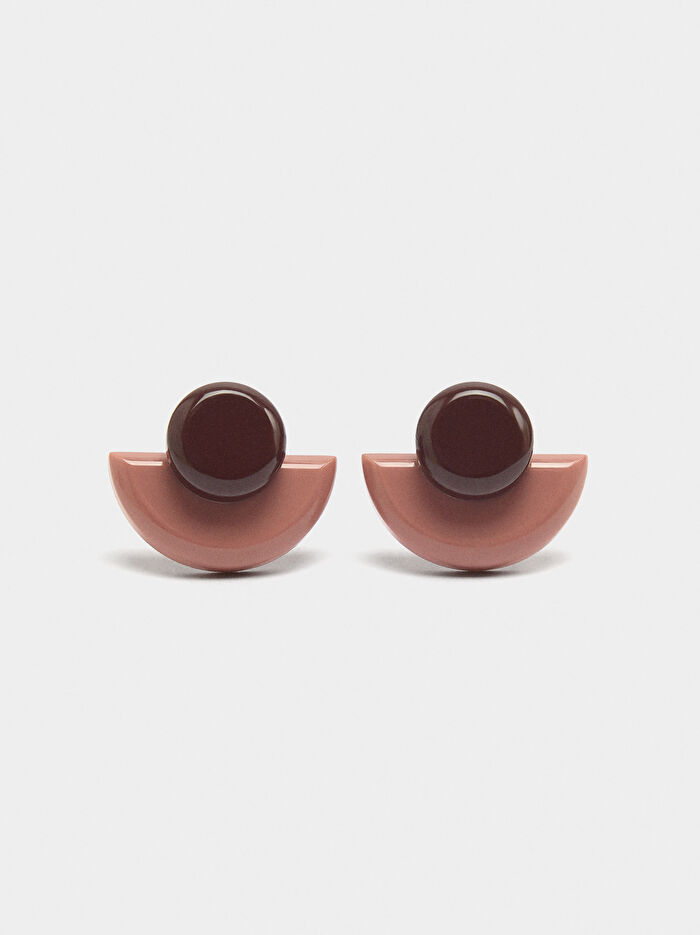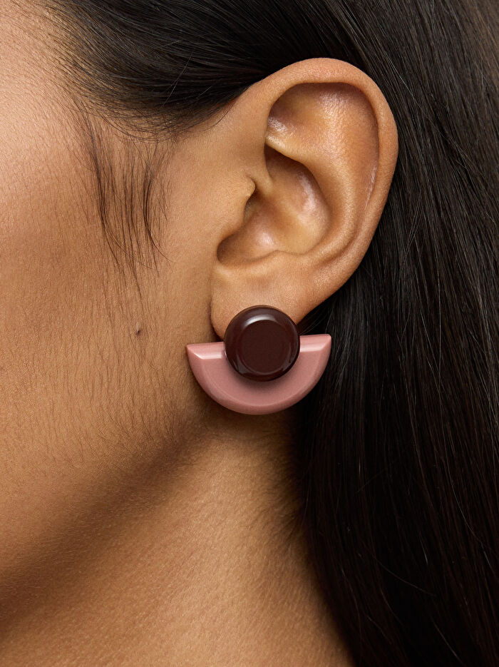 Reçineden orta boy küpe. Yelpaze şekli. Parlak bitiş.