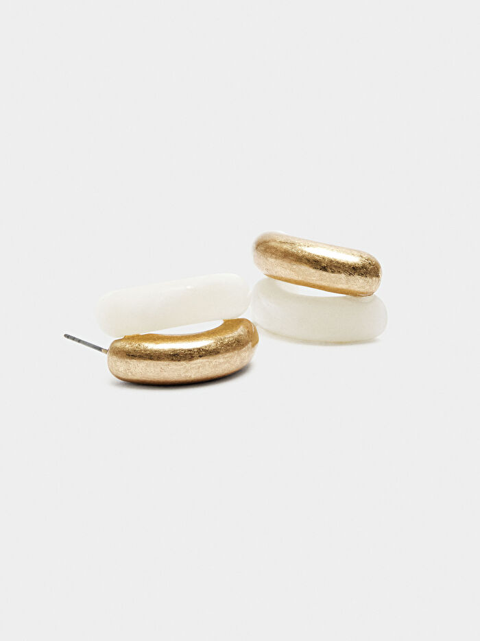 Çift efektli açık halka küpe. Biri resin, diğeri metalden yapılmıştır. Eskitilmiş efekt.