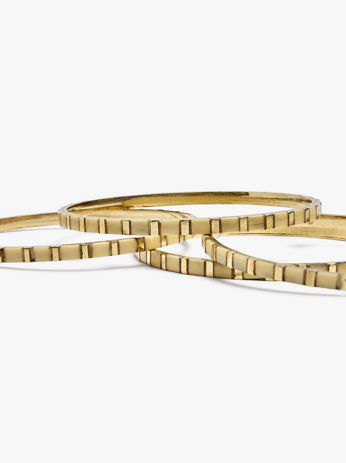 Bölmeli desenli dört sert bileklik seti. Eskitme efekti.