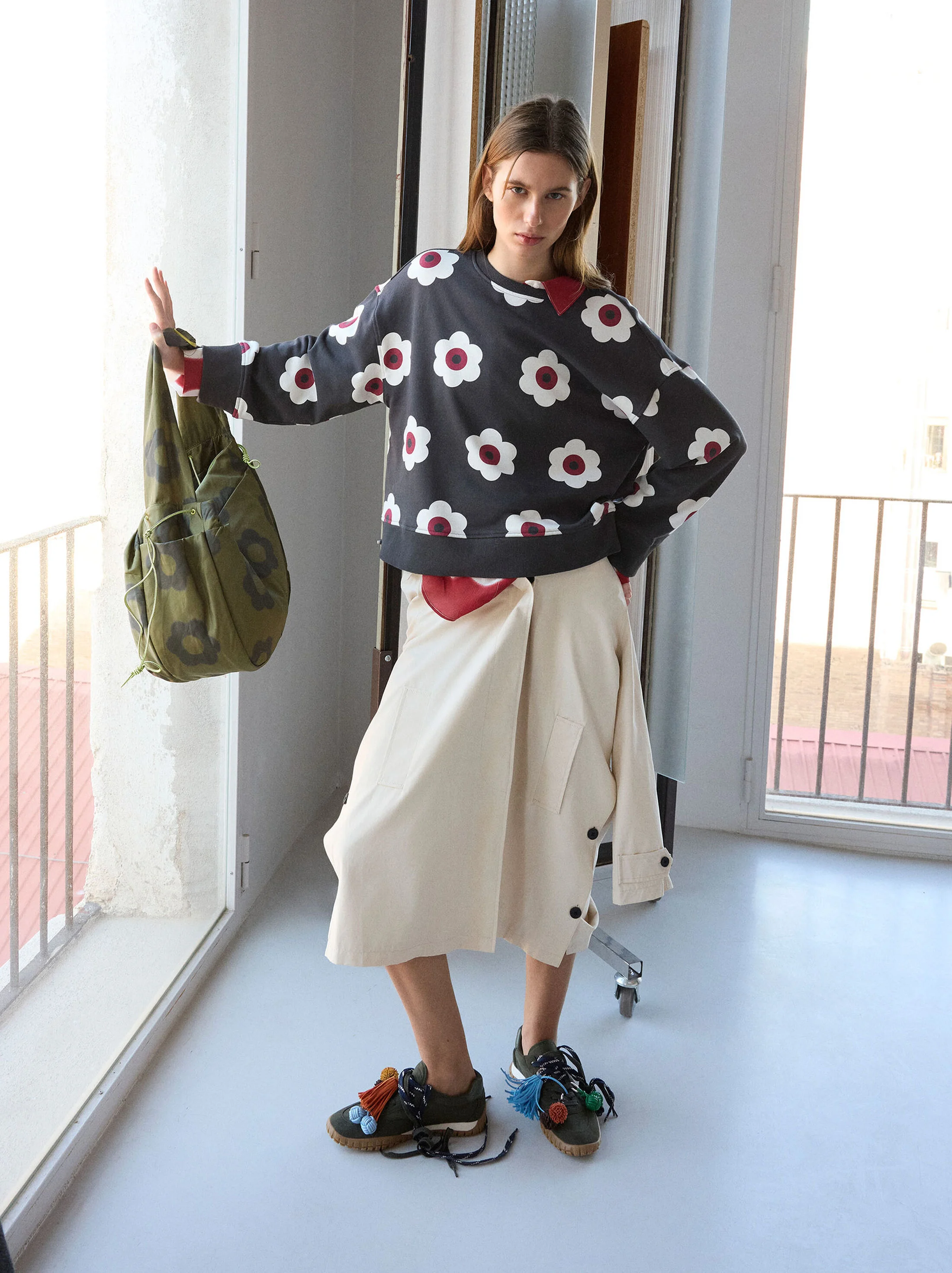 Pamuklu Çiçek Desenli Sweatshirt