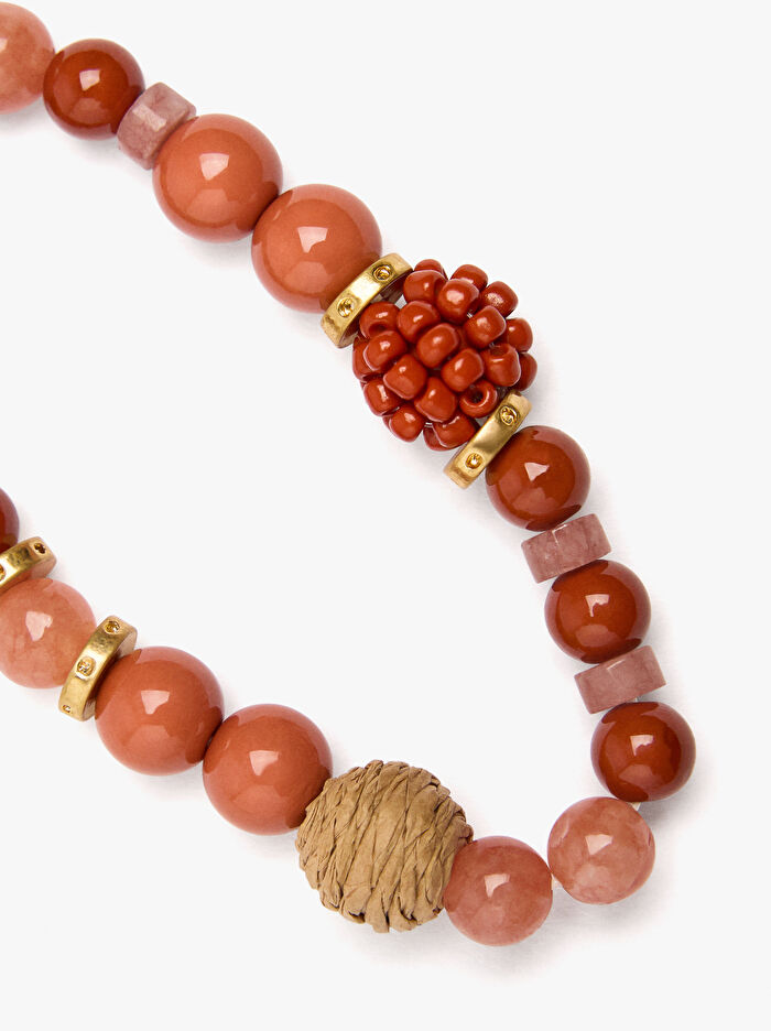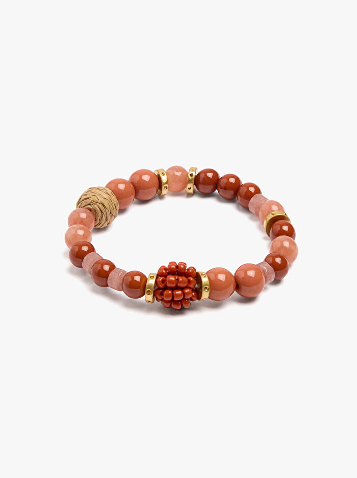 Rafya detaylı ve boncuklu, farklı boyutlarda taş boncuklarla elastik bilezik.