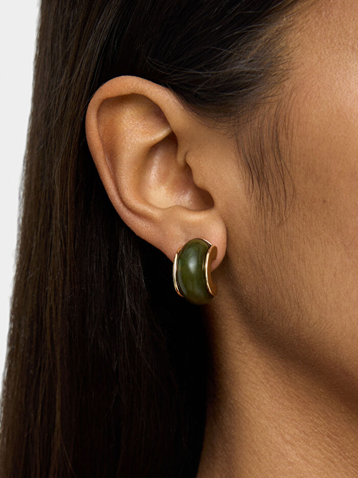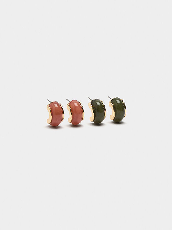 Taş Efektli Halka Küpe Seti