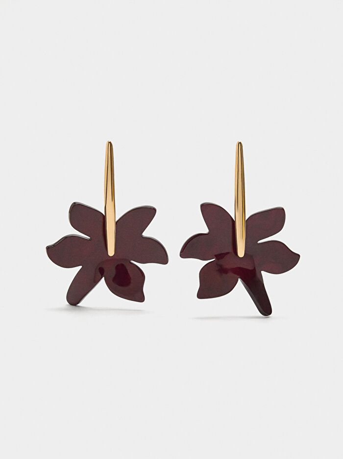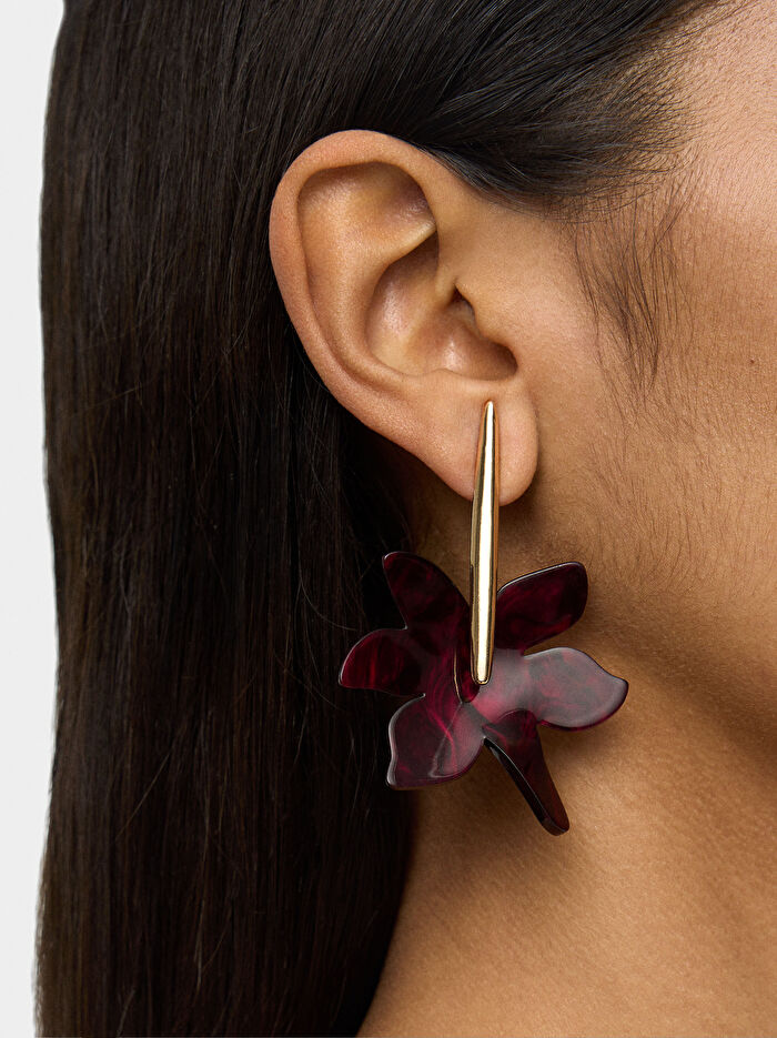 Mermer efekti olan çiçek şeklinde uzun küpe. Çubuk şeklinde taban.