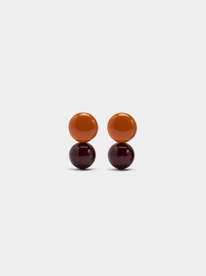 Aynı renk paletinde taş küreli kısa küpe. Altın kaplama ile kapanır.