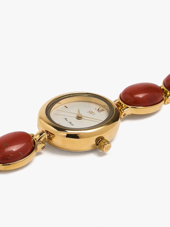Taşlı Kordonlu Oval Saat