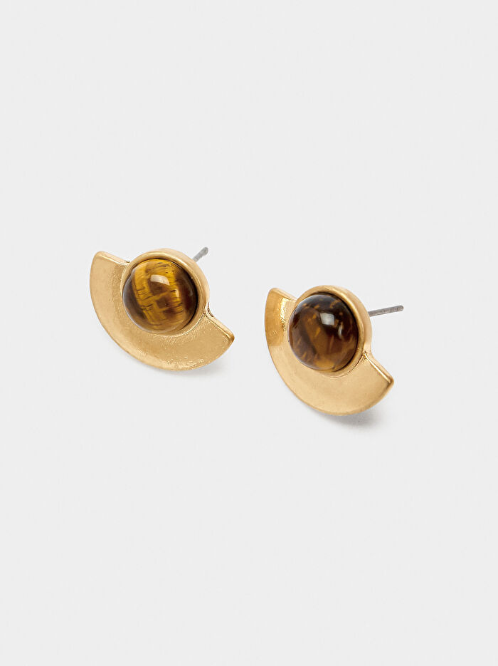 Taşlı Yelpaze Şeklinde Küpe