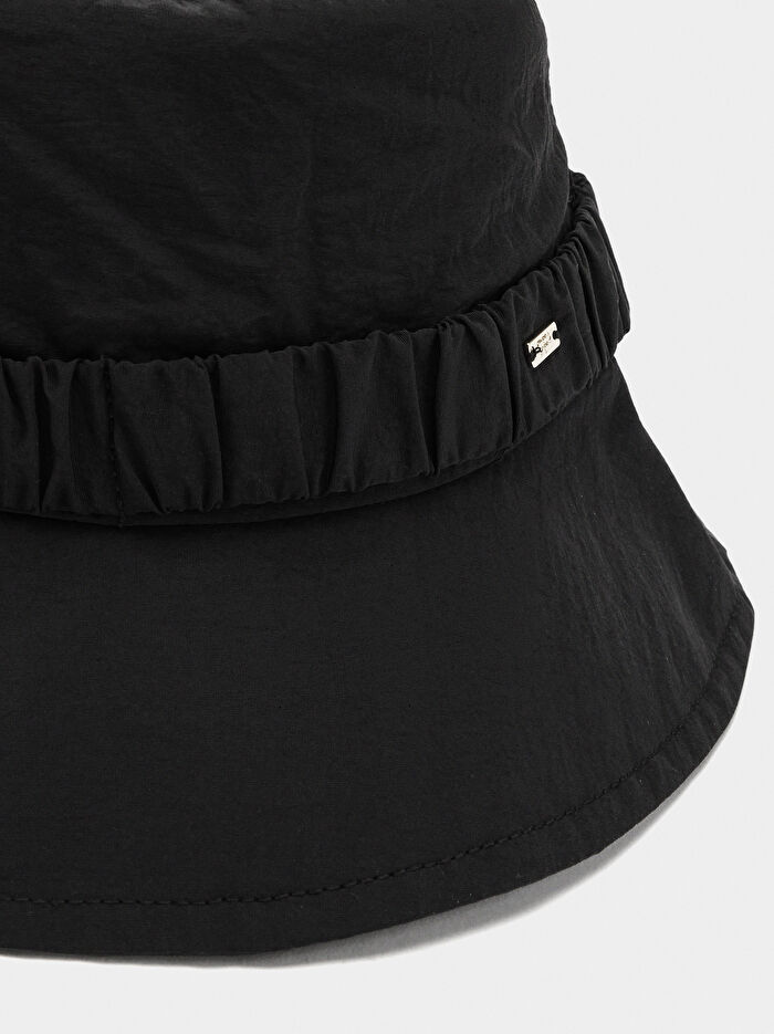 Teknik kumaş bucket şapka. Her stile şıklık ve sofistike bir dokunuş katan, kış için ideal bir aksesuar.