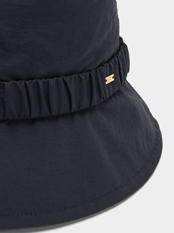 Teknik kumaş bucket şapka. Her stile şıklık ve sofistike bir dokunuş katan, kış için ideal bir aksesuar.