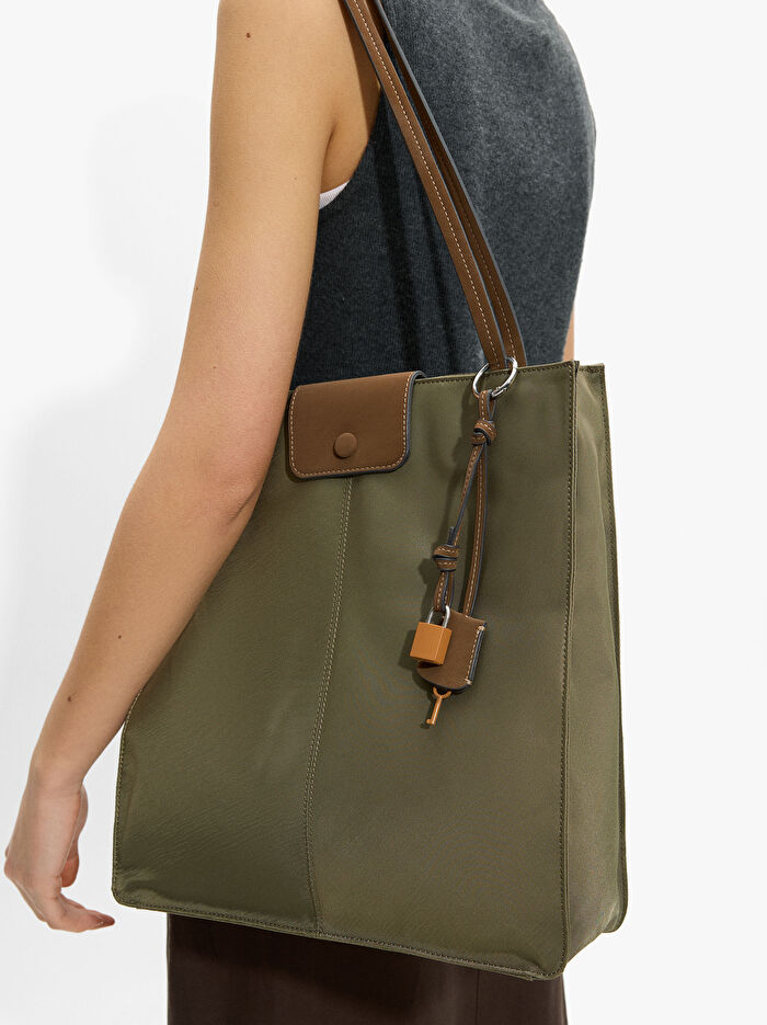15" laptop için büyük teknik kumaş çanta. Dikdörtgen form. Astar ve iç cep. Manyetik kapaklı kapatma. Çıkarılabilir charmlı. Sabit omuz askıları.