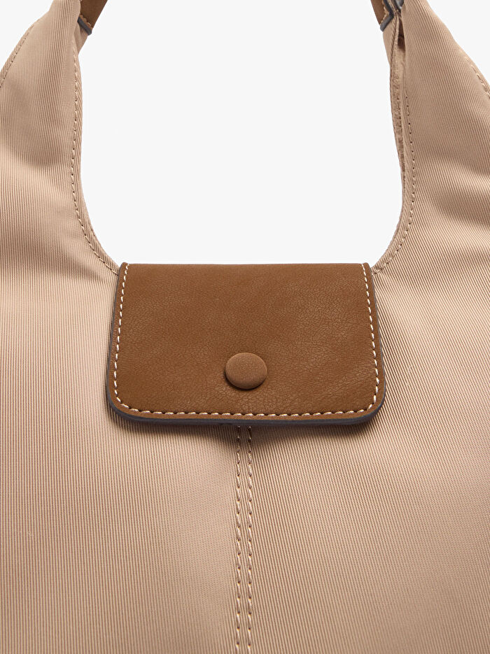 Astar ve iç cepli, büyük ve yapılı teknik kumaş el çantası. Fermuarlı kapatma ve manyetik kapaklı kapatma. Sabit saplar.
