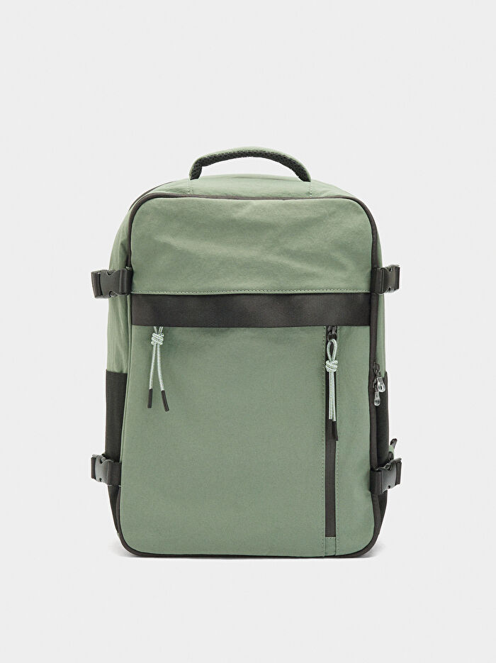 15” laptop için basic teknik kumaş kabin sırt çantası. İç astar. Yan cepler. Fermuarlı ön cepler. Çıkarılabilir tokalı yan kayışlar. Sabit el kayışı. Yastıklı ve ayarlanabilir sırt kayışları. Fermuarlı ana açıklık.
