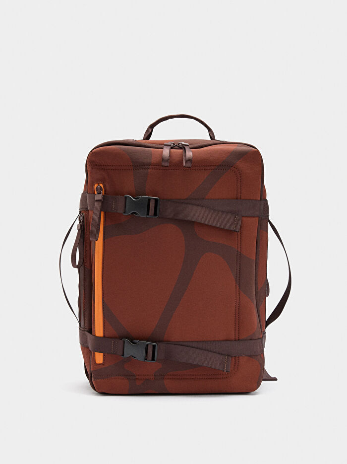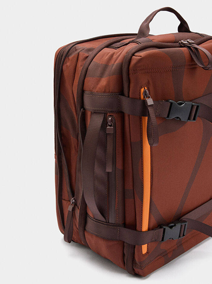 Sırt çantasını taşımayı daha rahat hale getirmek için üst, yan ve ayarlanabilir, güçlendirilmiş ve yastıklı kayışlara sahip uzatılabilir teknik kumaş kabin sırt çantası. Ön, yan ve arka kısımda fermuarlı dış cep. 13" laptop bölmesi. Fermuarlı iç cepler. İç elastik bantlar. Trolley sapına uyum sağlamak için arka kayış. İzin verilen boyutlara göre uçak içinde taşınabilir.