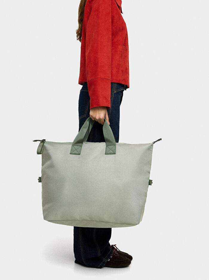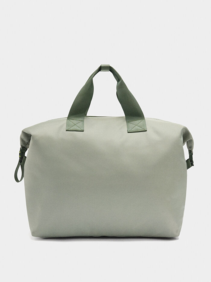 Astar ve iç cepli, sade hafta sonu seyahat bavulu. Teknik kumaştan üretilmiştir. Fermuarlı kapatma. Sabit el askıları. Sırt çantası ve omuz çantası olarak taşımak için askılar içerir.