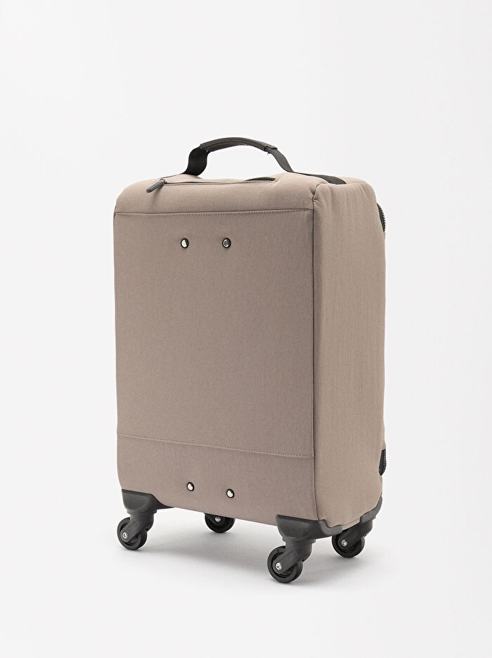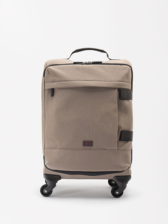 Dört tekerlekli teknik kumaş seyahat çantası. Fermuarlı gizli cep içinde uzatılabilir sap. Fermuarlı file iç cepler. Fermuarlı ön cepler. Elastik iç bantlar. Üst ve yan saplar.