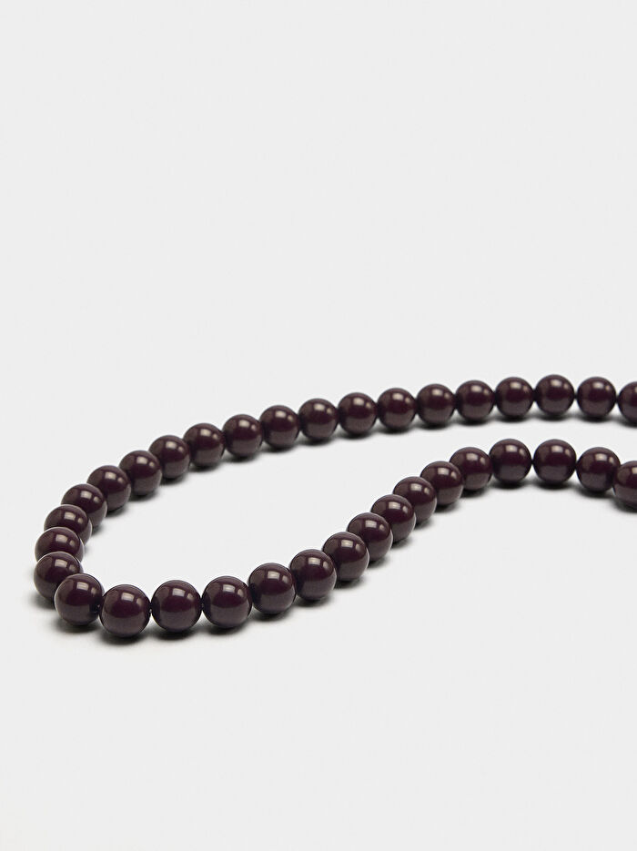 Tek renk boncuklu uzun kolye. Istakoz kopçalı kapatma. Parlak bitiş.