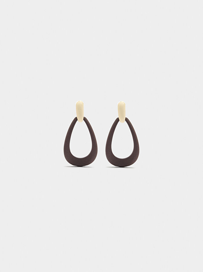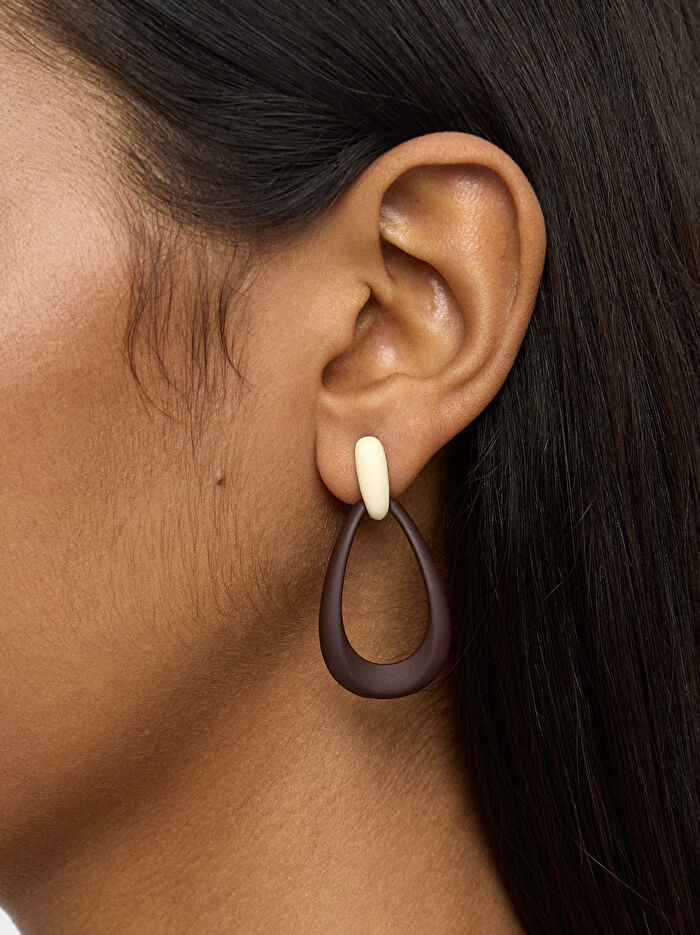 Uzun halka şekilli orta boy küpe. Kontrast renkte oval taban. Mat efekt.