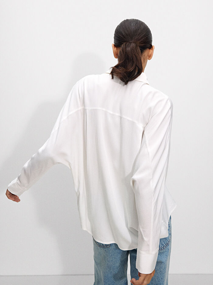 Uzun kollu basic gömlek. Viskon kumaştan yapılmıştır.Model 1.73 m boyundadır ve XS-S beden giymektedir.