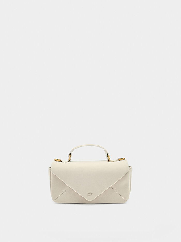 Yumuşak dokulu, çapraz askılı çanta. Manyetik kapaklı. Astarlı ve iç cep. İki bölme. Üst kısımda sabit bilek kayışı. Çıkarılabilir zincir kayış.
