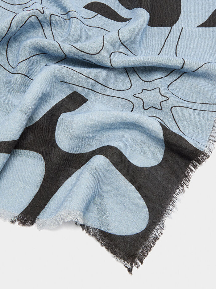 Çiçek desenli fular. Yün ve pamuk karışımı. Kenarlarında ince saçaklar. Her görünüme renk ve sofistike bir dokunuş katar.