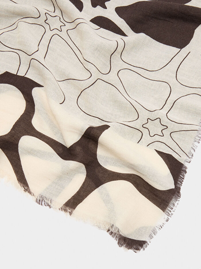 Çiçek desenli şal. Yün ve pamuk karışımı. Kenarlarında ince saçaklar. Her görünüme renk ve sofistike bir dokunuş katar.