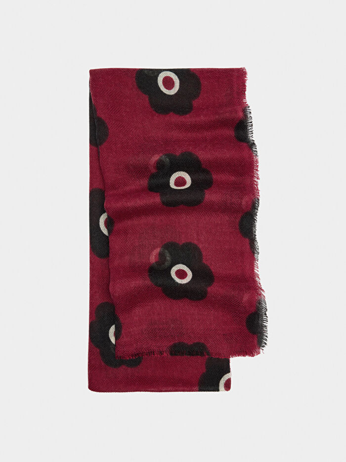 Çiçek desenli atkı. Yün karışımı. Kenarlarında ince püsküller. Her görünüme renk ve şıklık katıyor.