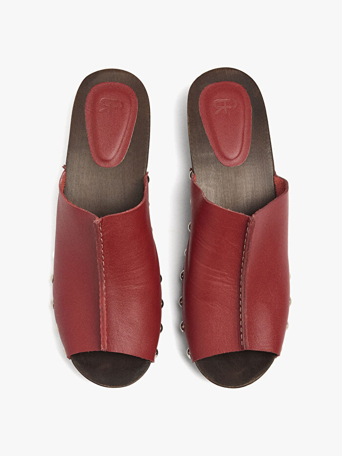 Zımba detaylı deri tarzı sandalet. Kabartmalı belirgin dikiş. Ekstra konfor için topuk yastığı. Yuvarlak burun. Kauçuk tabanlı ahşap platform ve topuk. Bu ayakkabı, her çiftte özgünlük, kalite ve dayanıklılık sağlamak için gerçek deri ve ahşap kullanılarak Portekiz'de el yapımı olarak üretilmiştir. Saklamak ve korumak için tasarlanmış bir kumaş çanta içinde sunulur. Bu özel ambalaj stok durumuna bağlıdır.