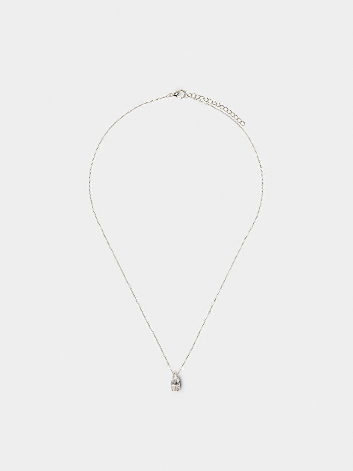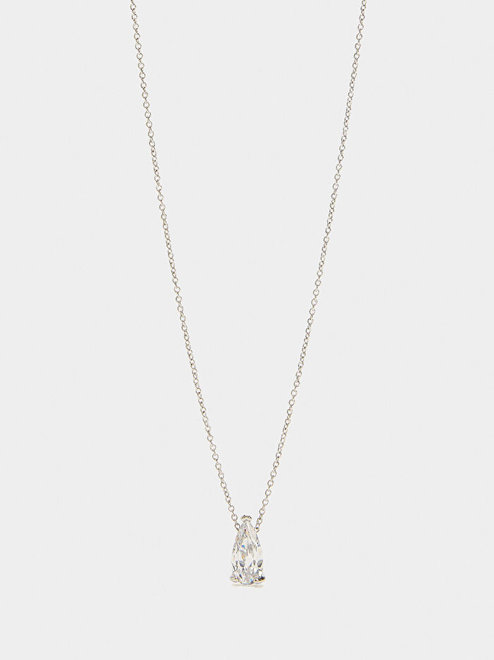 Damla şeklinde zirkonya kolye ucu bulunan ince kolye. Karides kancası kapama. Rodyum kaplama