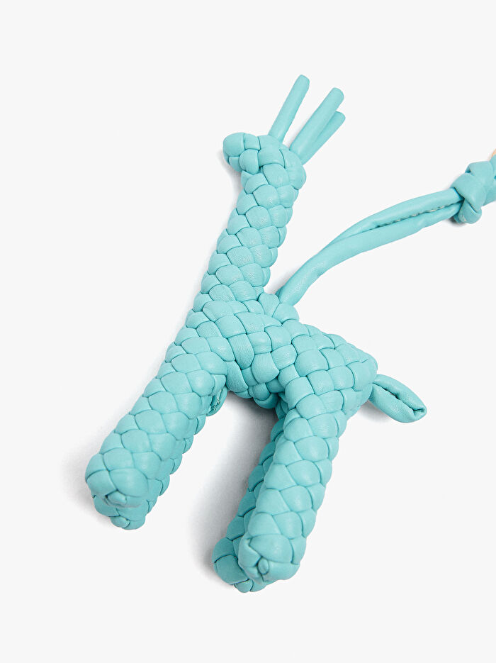 örmelü ve tek renkli zürafa charmlı anahtarlık. Anahtarlık, çanta veya sırt çantası askısı olarak kullanılabilir, şıklık ve kişilik katar.